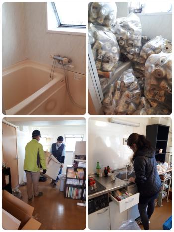 引っ越しは引っ越し業者が行い、残留物の片付けは依頼者様の娘様、納骨の窓口の社員・弊社で行いました。