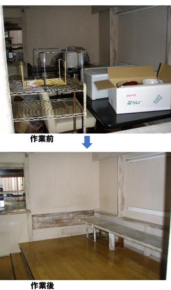 借りている倉庫スペースをお返しすることとなり、ご依頼者であられる先生と一緒にフラワーデザインの花材を分別(今後使用出来る物、処分する物)を行い、袋詰め、搬出を行いまいした。ご依頼者も一緒に作業をしましたので1~1.5時間程の短時間で終了しました。
