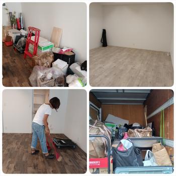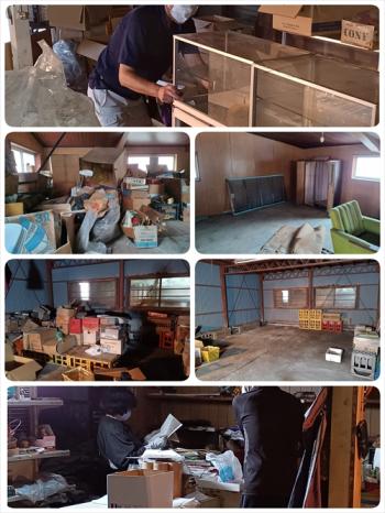 お店を行い、事務所・休憩スペースのカウンター裏、2Fの住み込み出来る2部屋、倉庫(24畳)の1・2Fの片付けを行いました。