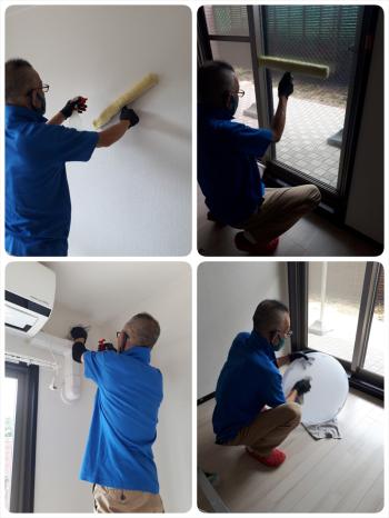 最初の1.5日で各部屋の消臭洗浄を終わらせ、夜間のオゾン脱臭を行う。日にちを開けて確認に訪問し、夜間タイマーでオゾン脱臭を繰り返し行いました。