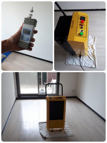 消臭洗浄が終わりましたら、各部屋を閉め切り行う。オゾン脱臭機でオゾン脱臭(除菌も含む)を約2時間行いました。臭いの状況によりオゾン脱臭時間は変更します。