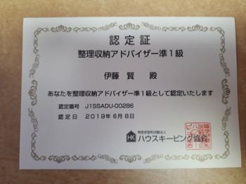 整理収納アドバイザー2級(ハウスキーピング協会)認定書をいただきました。